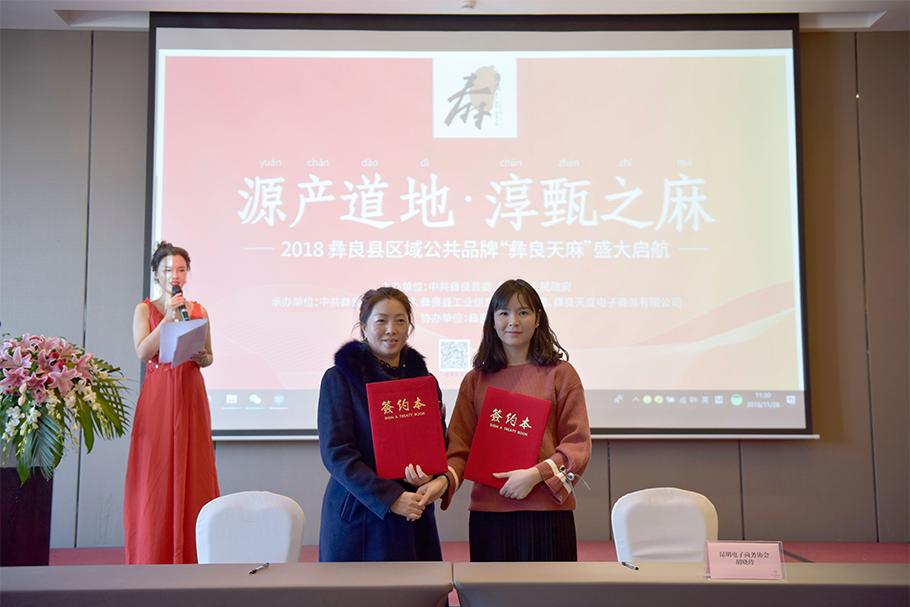 彝良谷生天麻種植有限公司尹芹與昆明電子商務(wù)協(xié)會胡曉玲秘書長簽署戰(zhàn)略合作協(xié)議