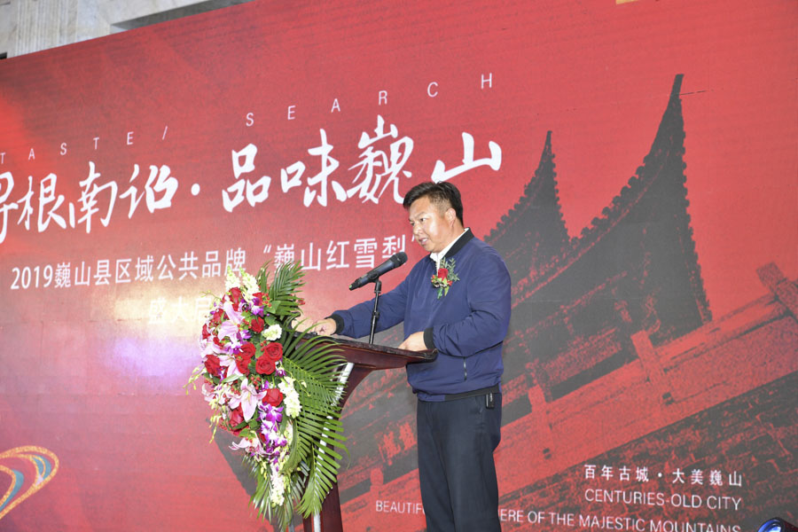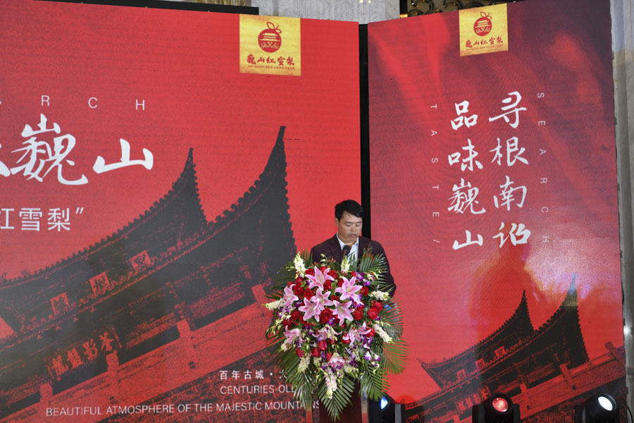 隨后,巍山縣人民政府王利偉縣長、巍山縣農(nóng)業(yè)農(nóng)村局局長沈看周,巍山縣馬鞍山鄉(xiāng)朝陽合作社陳文波社長分別從巍山紅雪梨的產(chǎn)業(yè)政策,種植、生產(chǎn)、加工全過程,歷史沿革及價(jià)值等方面,全方位闡述了“巍山紅雪梨”的發(fā)展前景及品牌打造的價(jià)值和意義。
