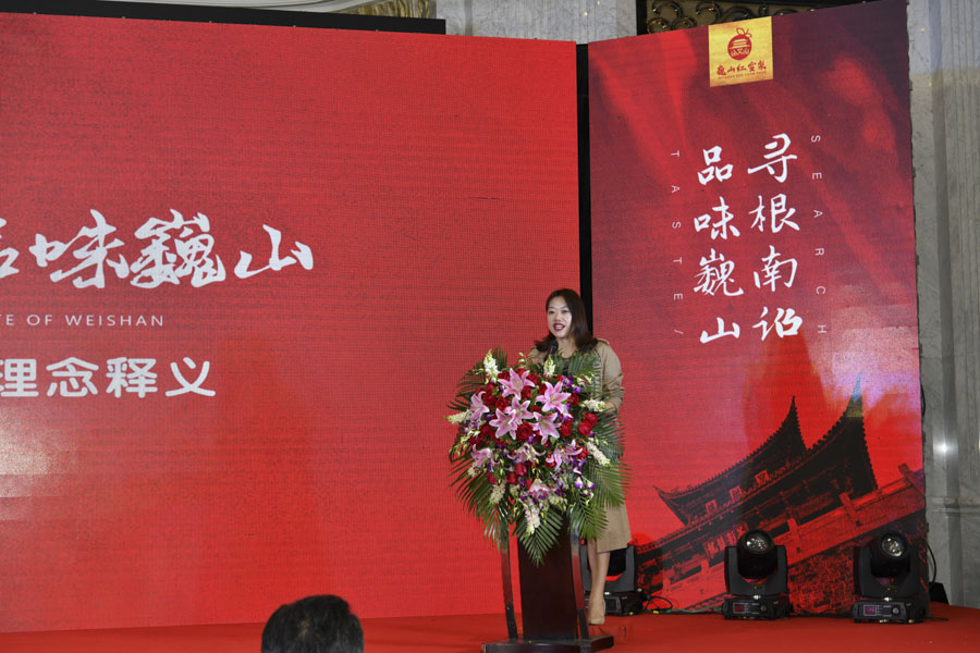發(fā)布會(huì)上,云南蔚嵐信息技術(shù)有限公司副總周晶晶詳細(xì)闡述了區(qū)域公共品牌的創(chuàng)作過程,包含了品牌定位、設(shè)計(jì)理念、設(shè)計(jì)應(yīng)用、擬人形象等,并強(qiáng)調(diào)了此次發(fā)布會(huì)以品牌——“尋根南詔·品味巍山”為活動(dòng)主題的意義。從歷史、產(chǎn)地、種植和品質(zhì)等四個(gè)方面,總結(jié)突出了“巍山紅雪梨”的特性,同時(shí),也詮釋了“巍山紅雪梨”的區(qū)位優(yōu)勢、源產(chǎn)地優(yōu)勢、精細(xì)化的科學(xué)管理優(yōu)勢、產(chǎn)品品質(zhì)優(yōu)勢以及現(xiàn)有產(chǎn)業(yè)扶持政策優(yōu)勢等,從而體現(xiàn)了品牌價(jià)值和品牌發(fā)展戰(zhàn)略。