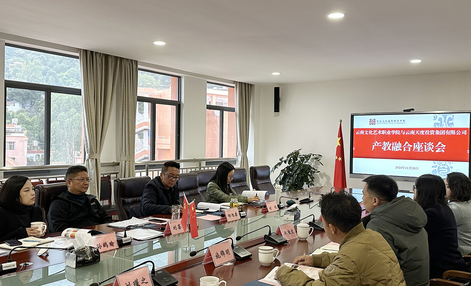 為深入貫徹省委、省政府關(guān)于推動產(chǎn)教融合的政策精神,加強(qiáng)學(xué)校與產(chǎn)業(yè)的深度融合發(fā)展,打造校企協(xié)同職業(yè)教育發(fā)展新模式,11月28日上午,云南文化藝術(shù)職業(yè)學(xué)院與云南天度投資集團(tuán)有限公司召開產(chǎn)教融合座談會。云南文化藝術(shù)職業(yè)學(xué)院黨委書記劉鑒允,黨委副書記、院長楊旭康,黨委委員、副院長孫鶴瑜,黨委委員、副院長劉悅;云南天度投資集團(tuán)有限公司董事長鄭桂文、副總經(jīng)理陳玉鳳、副總經(jīng)理施錦明,云南天度科技發(fā)展有限公司總經(jīng)理胡婷婷及相關(guān)負(fù)責(zé)人參加座談交流。