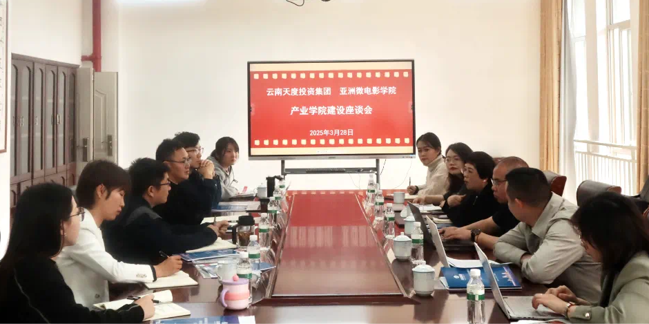 為深入貫徹落實國家產(chǎn)教融合戰(zhàn)略部署,破解邊疆影視人才供給與產(chǎn)業(yè)需求的結(jié)構(gòu)性矛盾,3月28日,云南天度投資集團(tuán)與亞洲微電影學(xué)院召開產(chǎn)業(yè)學(xué)院建設(shè)座談會。雙方圍繞“以影視為載體、以產(chǎn)業(yè)為紐帶、以邊疆為特色”主題,就構(gòu)建“四鏈融合”育人體系、打造產(chǎn)教協(xié)同創(chuàng)新生態(tài)達(dá)成戰(zhàn)略共識。云南天度投資集團(tuán)有限公司總經(jīng)理陳俊園、天度科技產(chǎn)業(yè)發(fā)展有限公司總經(jīng)理胡婷婷,學(xué)院黨總支書記劉紹彬、副院長夏麗娜及校企雙方代表10余人參加會議,學(xué)院黨總支副書記、主持工作副院長陳彥雄主持會議。